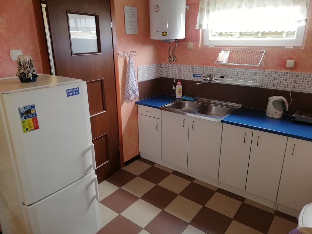 – Aneks kuchenny wyposażony w komplet naczyń i sztućców, czajnik, kuchenkę elektryczną, lodówkę.