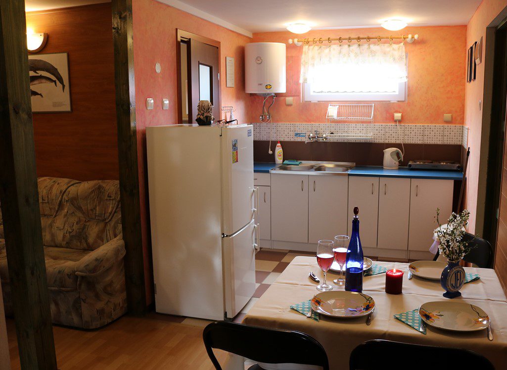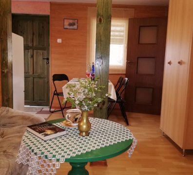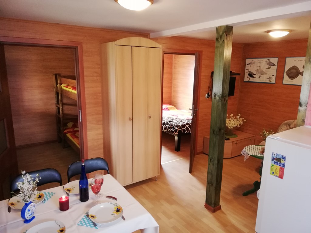 – Dwie sypialnie; pierwsza z dużym dwuosobowym łożem, druga(dla dzieci) z piętrowym drewnianym łóżkiem.